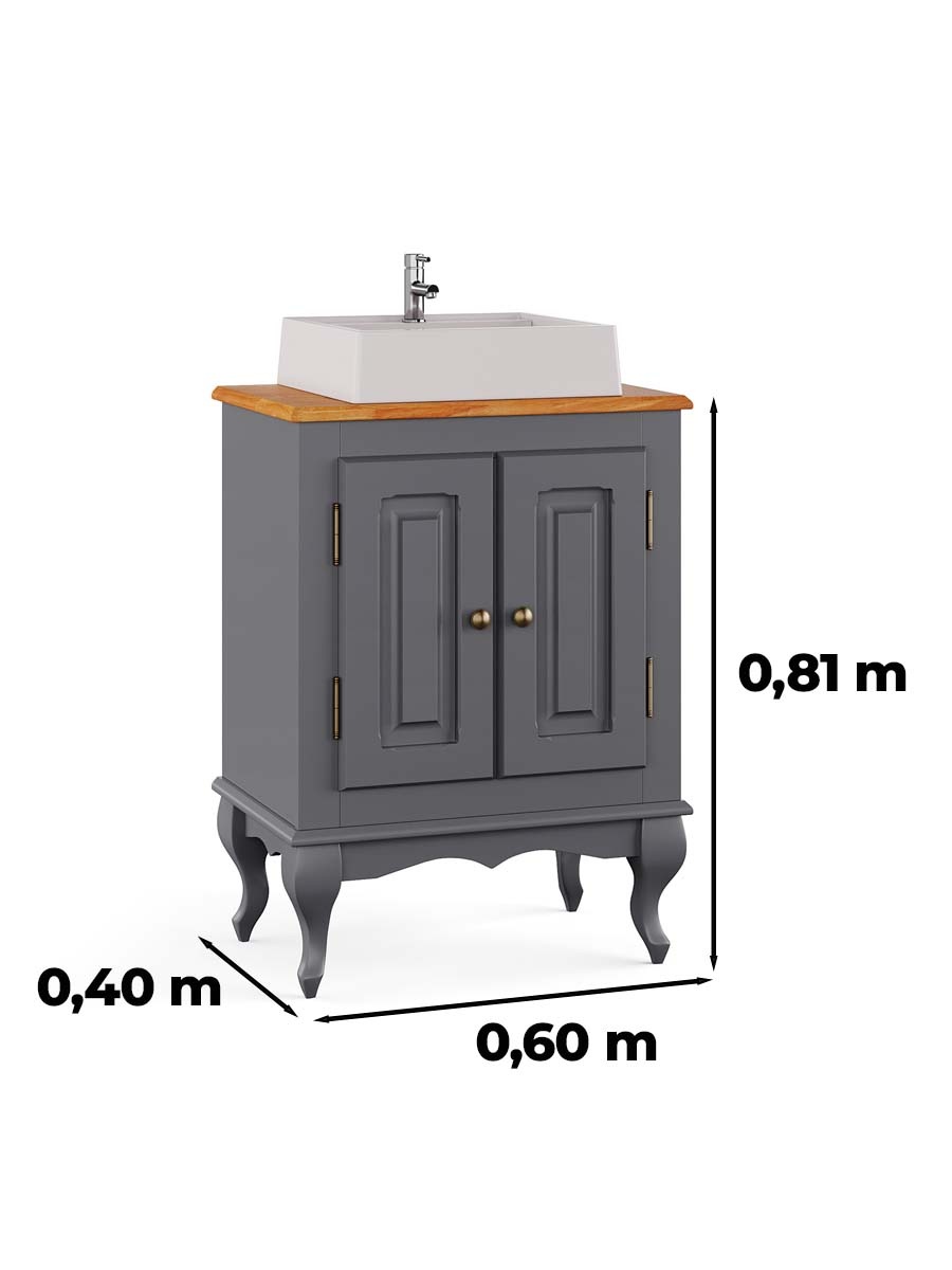 Balcão para banheiro com cuba e espelho pés Luis XV 2 portas Dalia 81 x 60 x 40 cm (A x L x P). Balcão de madeira possui duas portas e pés Luis XV é ideal para compor o banheiro, acompanha a cuba. Estrutura com pintura laqueada podendo ser personalizável. Cuidamos de cada detalhe para criar uma linha exclusiva e diferenciada, que possa ser combinada com diferentes estilos de decoração. Para você que está pensando em redecorar seu espaço, as peças desta linha com certeza são indispensáveis. Possui 0,81 m de altura por 0,60 m de largura e 0,40 m de profundidade. A balcão é enviado montado.