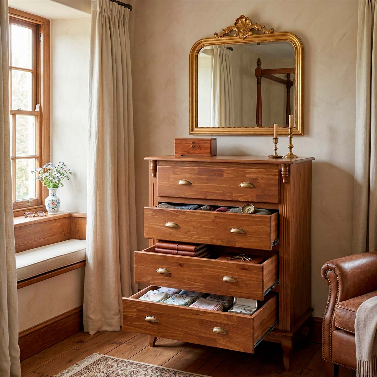 Cômoda Hanover 4 gavetas Pés Luis XV 116 x 90 x 50 cm (A x L x P). Cômoda Linz com pés Luis XV, esta linha é perfeita para dar um upgrade na decoração de seu quarto, suas peças além de serem super versáteis e funcionais, contam com gavetas que facilitam muito o dia a dia e a organização de itens como roupas, livros, roupas de cama e outros, possuem também um design elegante agregando mais sofisticação ao ambiente. São móveis de extrema resistência e durabilidade produzidos em materiais de excelente qualidade. Possui 1,16 m de altura por 0,90 m de largura e 0,50 m de profundidade. A cômoda Linz é enviada montada.