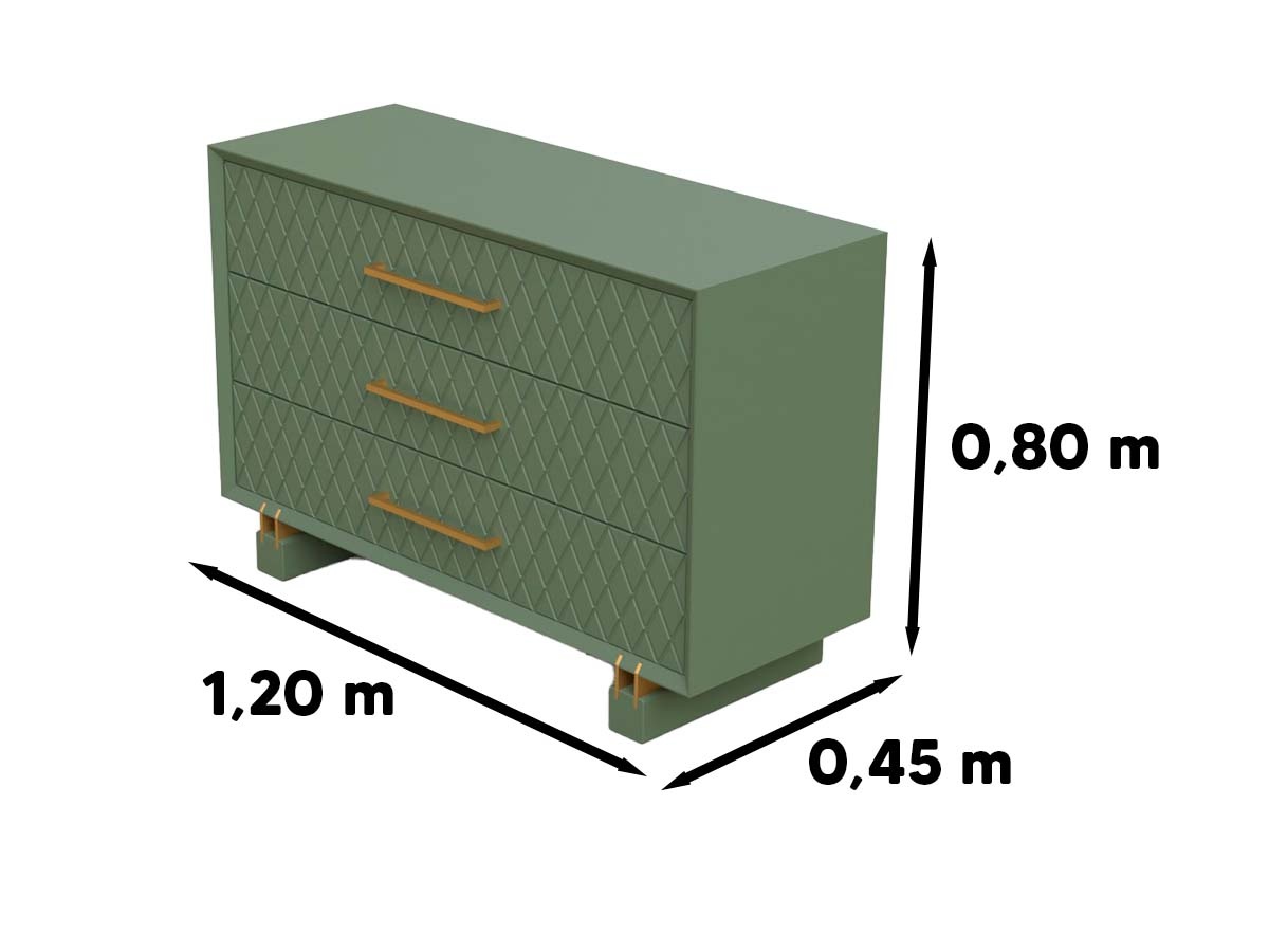 Cômoda Nice 3 gavetas frente entalhada em matelassê 80 x 120 x 45 cm (A x L x P). Inspirado na técnica de costura Matelassê e nas bolsas femininas de luxo, a linha Nice tem como destaque de design, suas gavetas com textura que lembra o Matelassê e detalhes em metal dando um ar sofisticado. Possui 0,80 m de altura por 1,20 m de largura e 0,45 m de profundidade. A cômoda Nice é enviada montada.