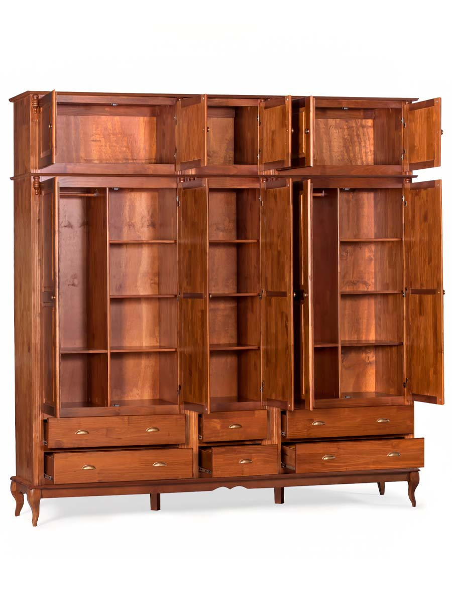 Roupeiro Linz 04 portas 04 gavetas 252 x 248 x 50 cm (A x L x P). Roupeiro Linz com pés Luis XV, esta linha é perfeita para dar um upgrade na decoração de seu quarto, suas peças além de serem super versáteis e funcionais, contam com duas gavetas que facilitam muito o dia a dia e a organização de itens como roupas, livros, roupas de cama e outros, possuem também um design elegante agregando mais sofisticação ao ambiente. São móveis de extrema resistência e durabilidade produzidos em materiais de excelente qualidade. Possui 2,52 m de altura por 2,48 m de largura e 0,50 m de profundidade. O roupeiro Linz é enviado semi montado.