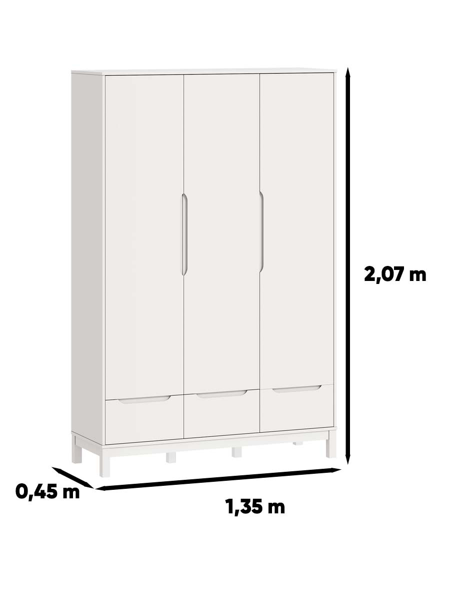 Roupeiro 3 portas 3 gavetas linha Cozy 207 x 135 x 45 cm (A x L x P). Com um berço, cômoda e armário cuidadosamente projetados, a linha Cozy combina funcionalidade com um estilo americano de linhas retas. É para papais que buscam praticidade de forma leve e elegante! Gavetas com corrediças telescópicas. O roupeiro Cozy é enviado desmontado.