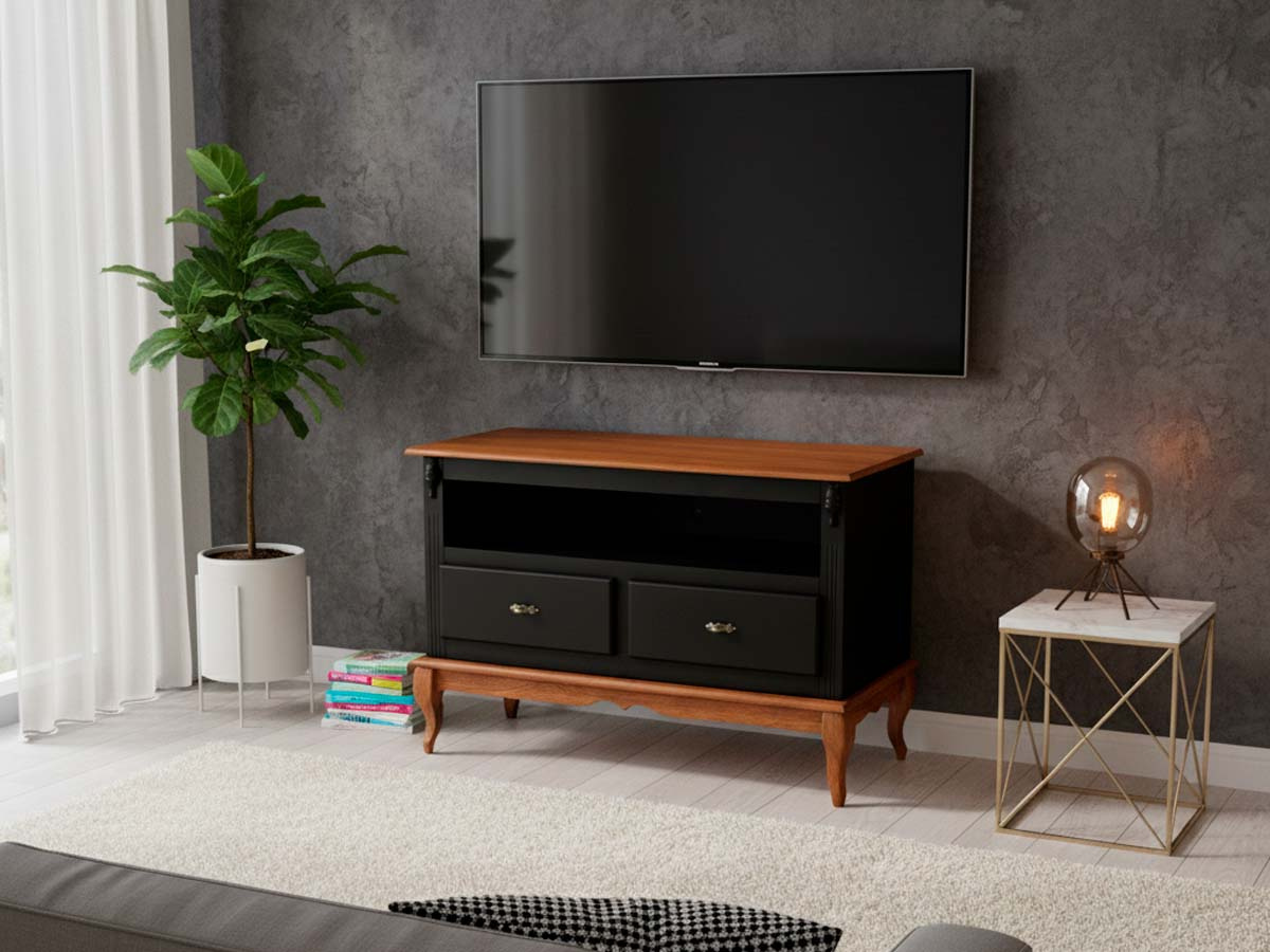 Rack Linz 2 gavetas 75 x 120 x 40 (A x L x P). O rack Linz é fabricado em matéria prima selecionada e de extrema qualidade. Seu design inspirado neoclássico traz classe e requinte ao ambiente. Cuidamos de cada detalhe para criar uma linha exclusiva e diferenciada, que possa ser combinada com diferentes estilos de decoração. Para você que está pensando em redecorar seu espaço, as peças desta linha com certeza são indispensáveis. O rack Linz conta com diversas opções de pintura, duas gavetas, um nicho e pés Luis XV. Possui 0,75 m de altura por 1,20 m de largura e 0,40 m de profundidade. O rack de madeira Linz é enviado montado.