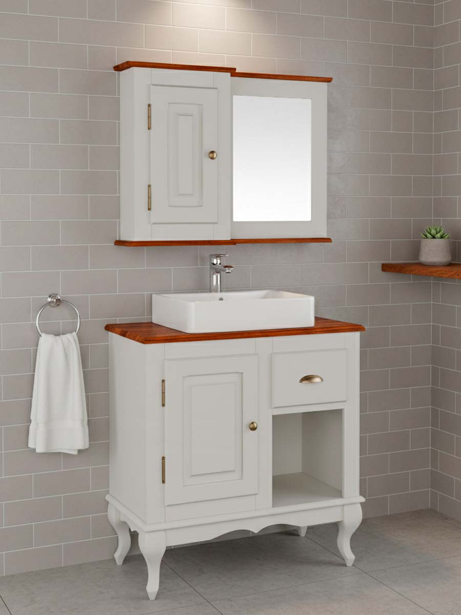Balcão para banheiro com espelho pés Luis XV 1 porta 1 gaveta + nicho Dalia 81 x 80 x 40 cm (A x L x P). Balcão para banheiro possui uma porta uma gaveta 1 nicho e pés Luis XV é ideal para compor o banheiro, acompanha espelho. Cuidamos de cada detalhe para criar uma linha exclusiva e diferenciada, que possa ser combinada com diferentes estilos de decoração. Para você que está pensando em redecorar seu espaço, as peças desta linha com certeza são indispensáveis. Possui 0,81 m de altura por 0,80 m de largura e 0,40 m de profundidade. A balcão é enviado montado.